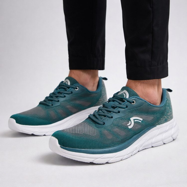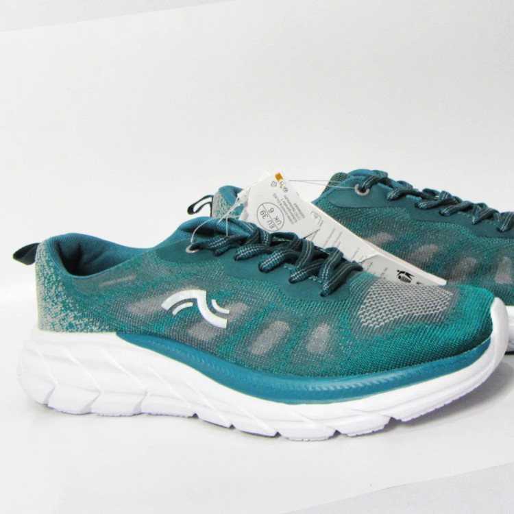 زیره بیرونی (outsole): جنس: لاستیک رنگ: آبی سبز (کمی تیره تر از رویه) بدون آج های خشن.